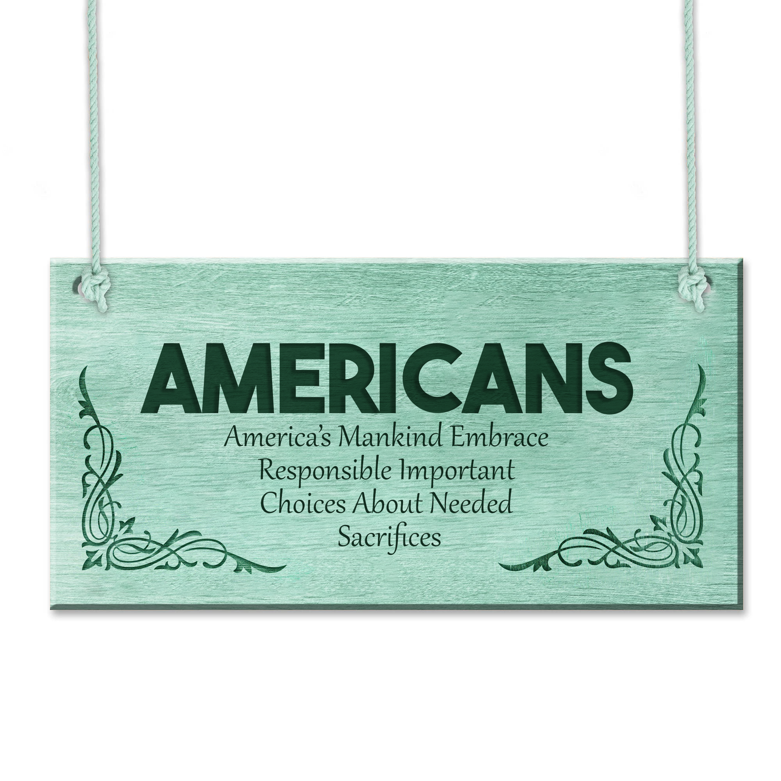 AMERICANS – America’s Mankind Embrace Responsible Important Choices About Needed Sacrifices is a meaningful decorative plaque honoring responsibility, unity, and sacrifice.
