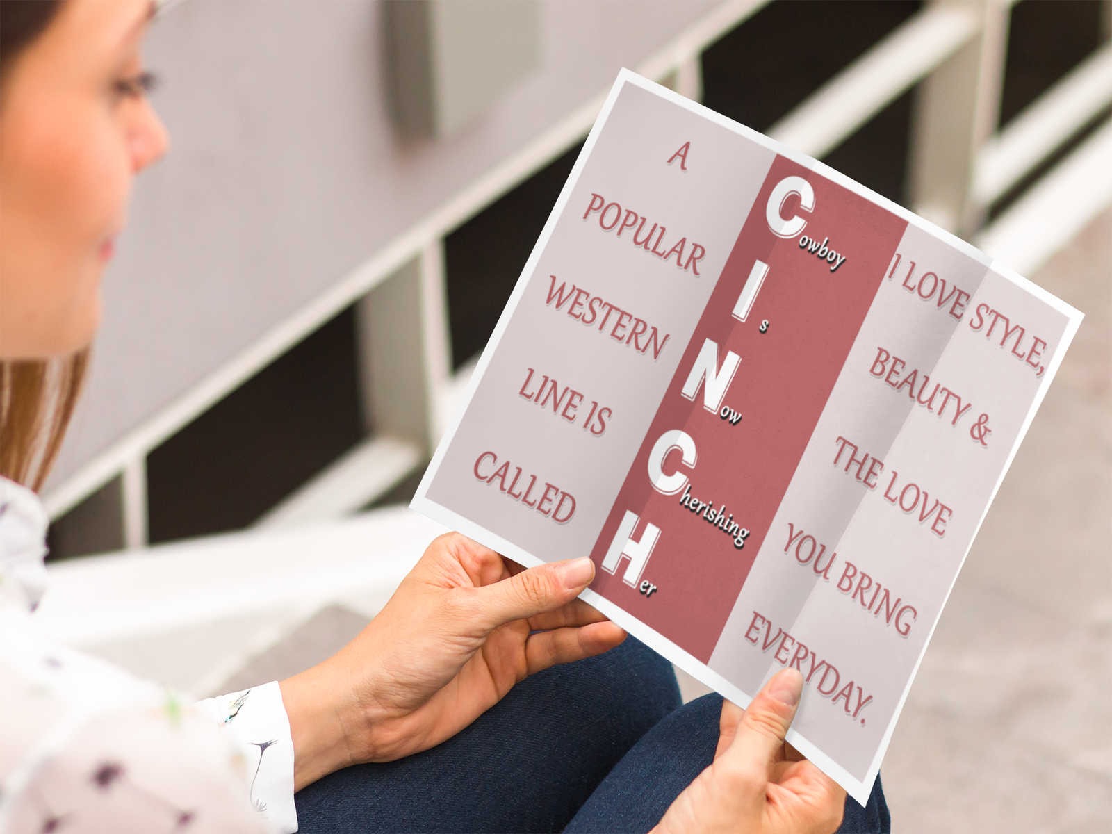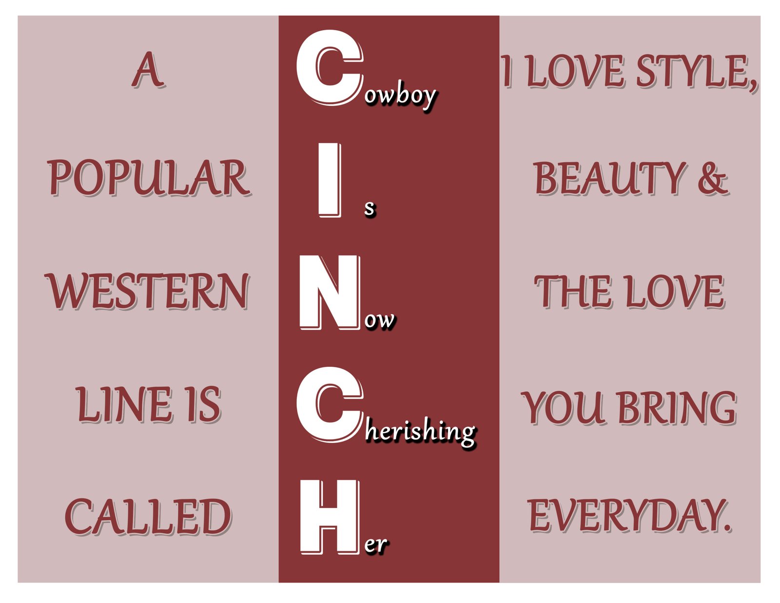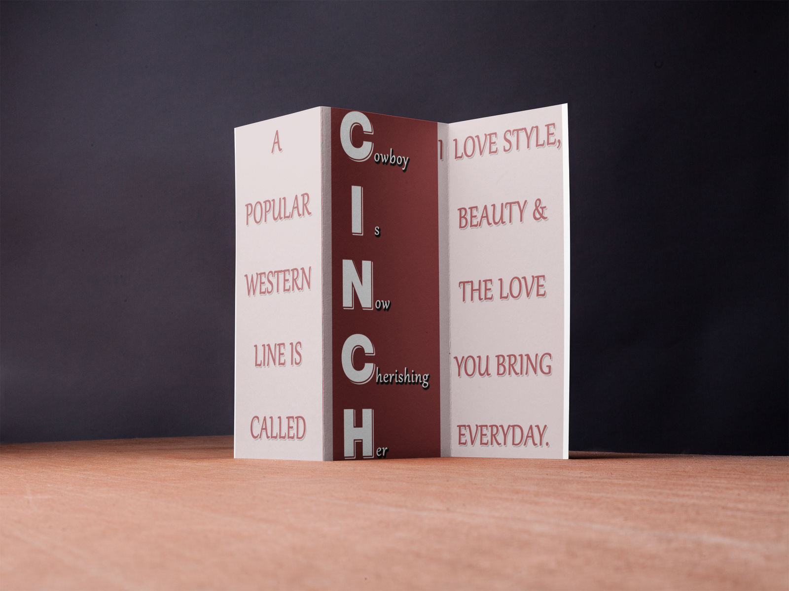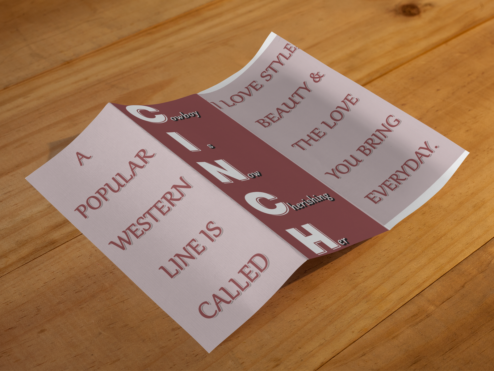 CINCH – Cowboy Is Now Cherishing Her is a bold and romantic trifold design inspired by western charm, love, and admiration.