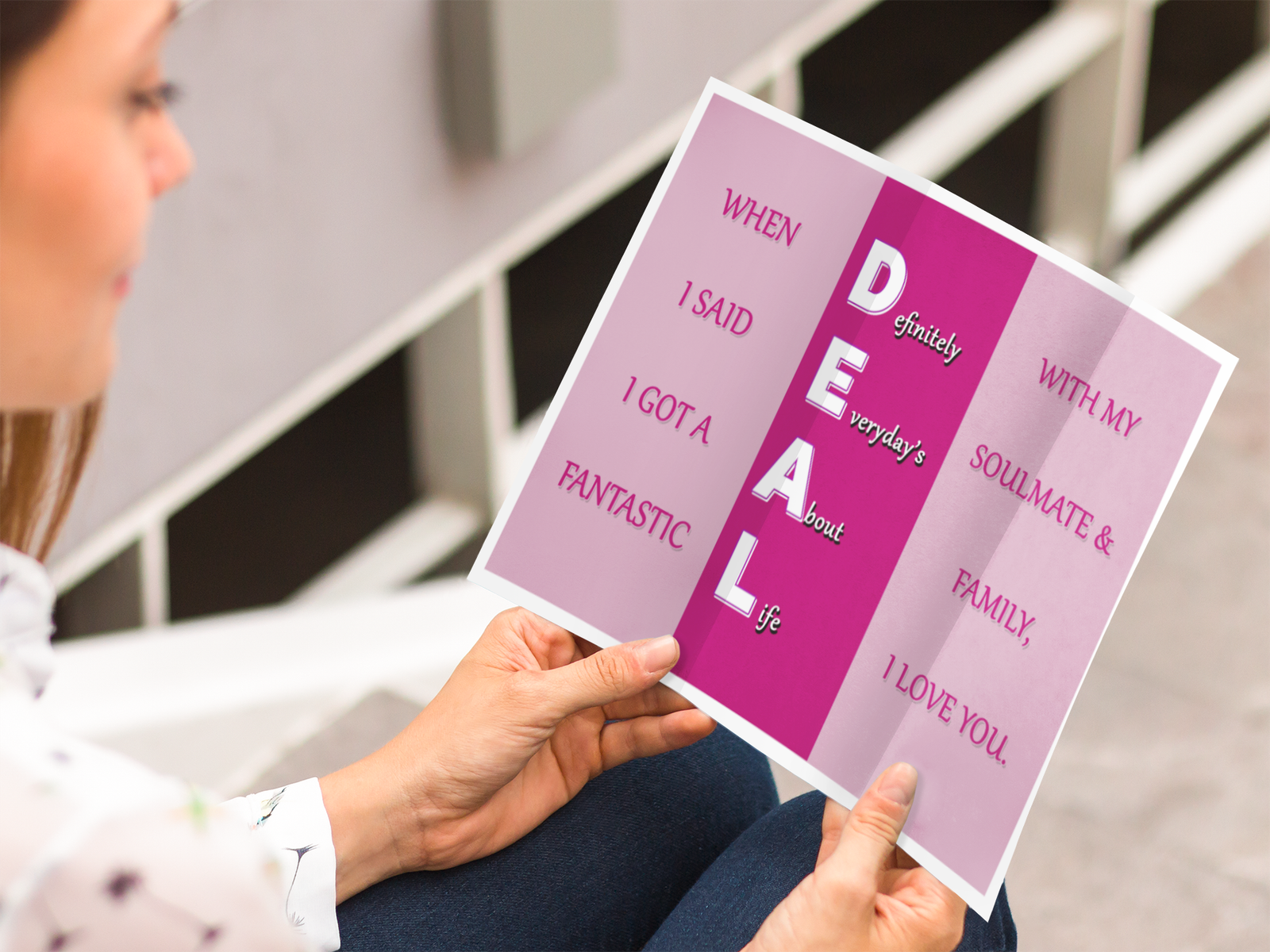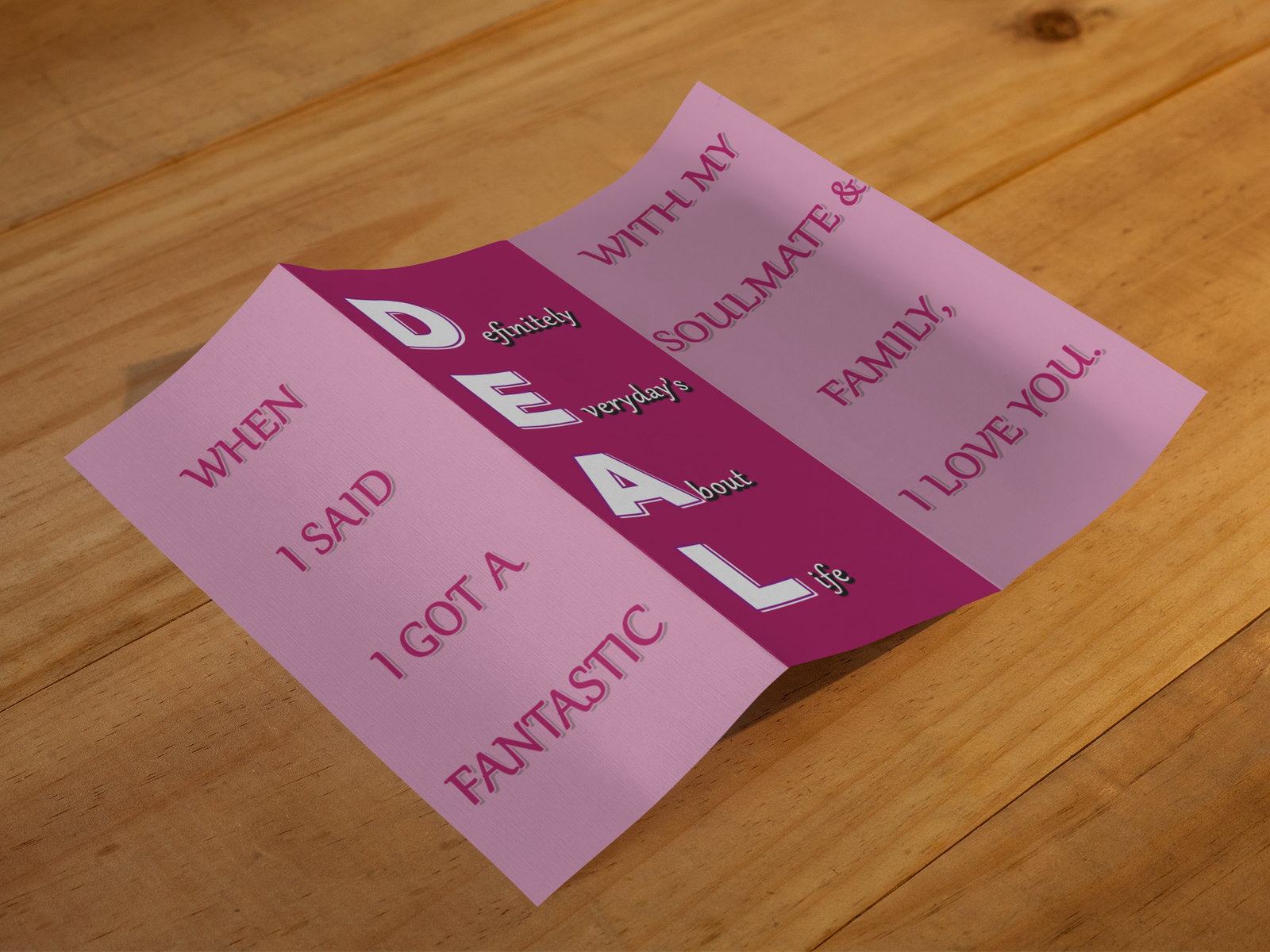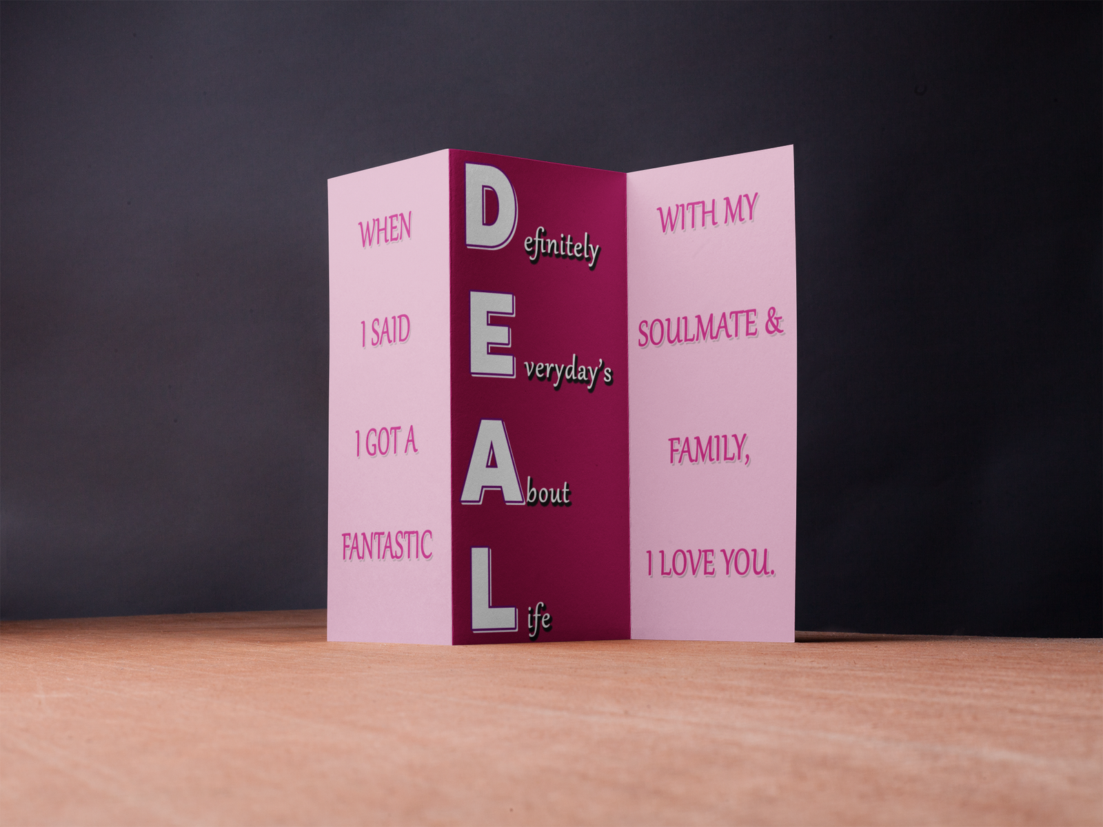 DEAL – Definitely Everyday’s About Life is a heartfelt trifold design that celebrates happiness, togetherness, and the beauty of everyday living.
