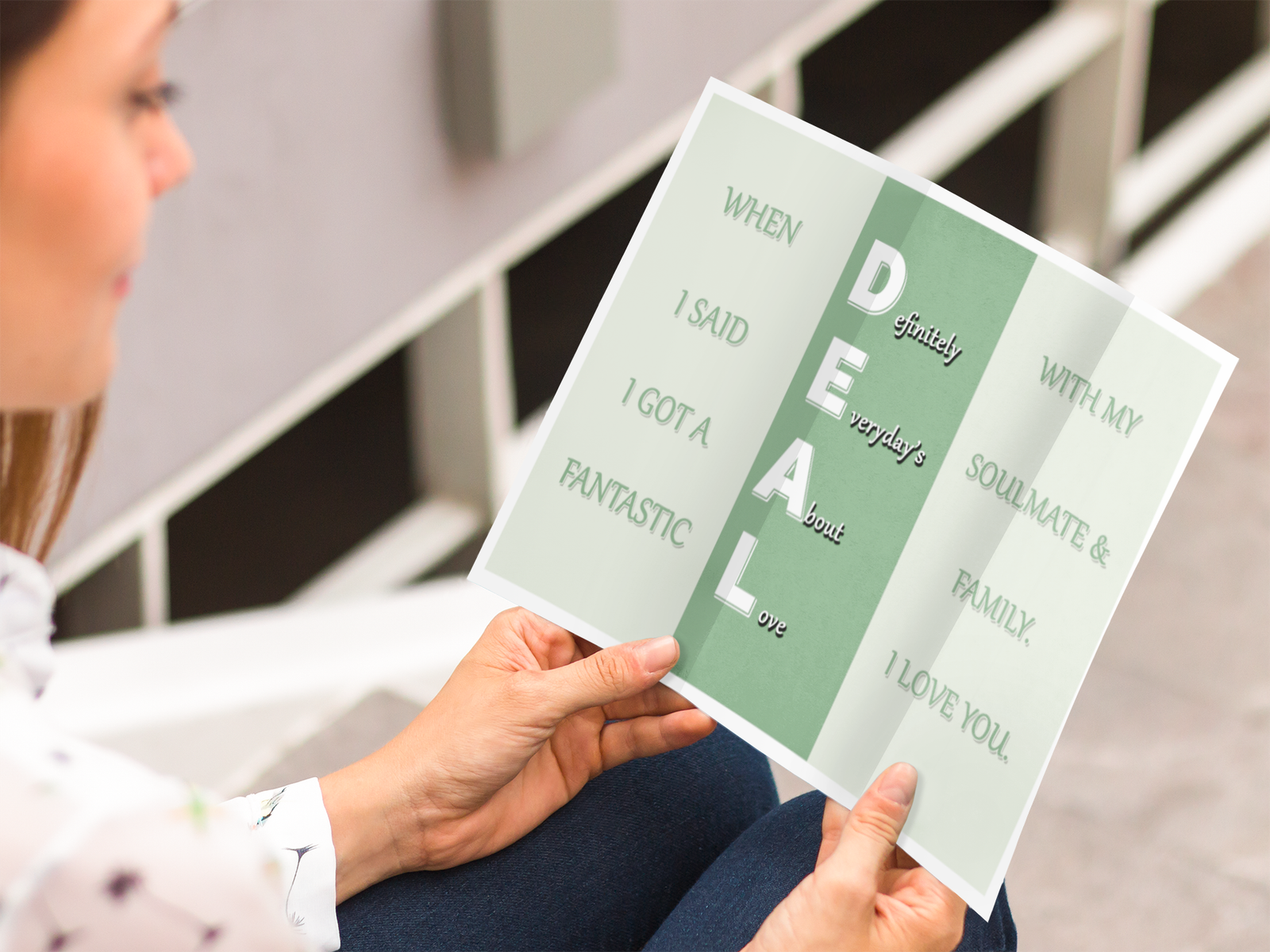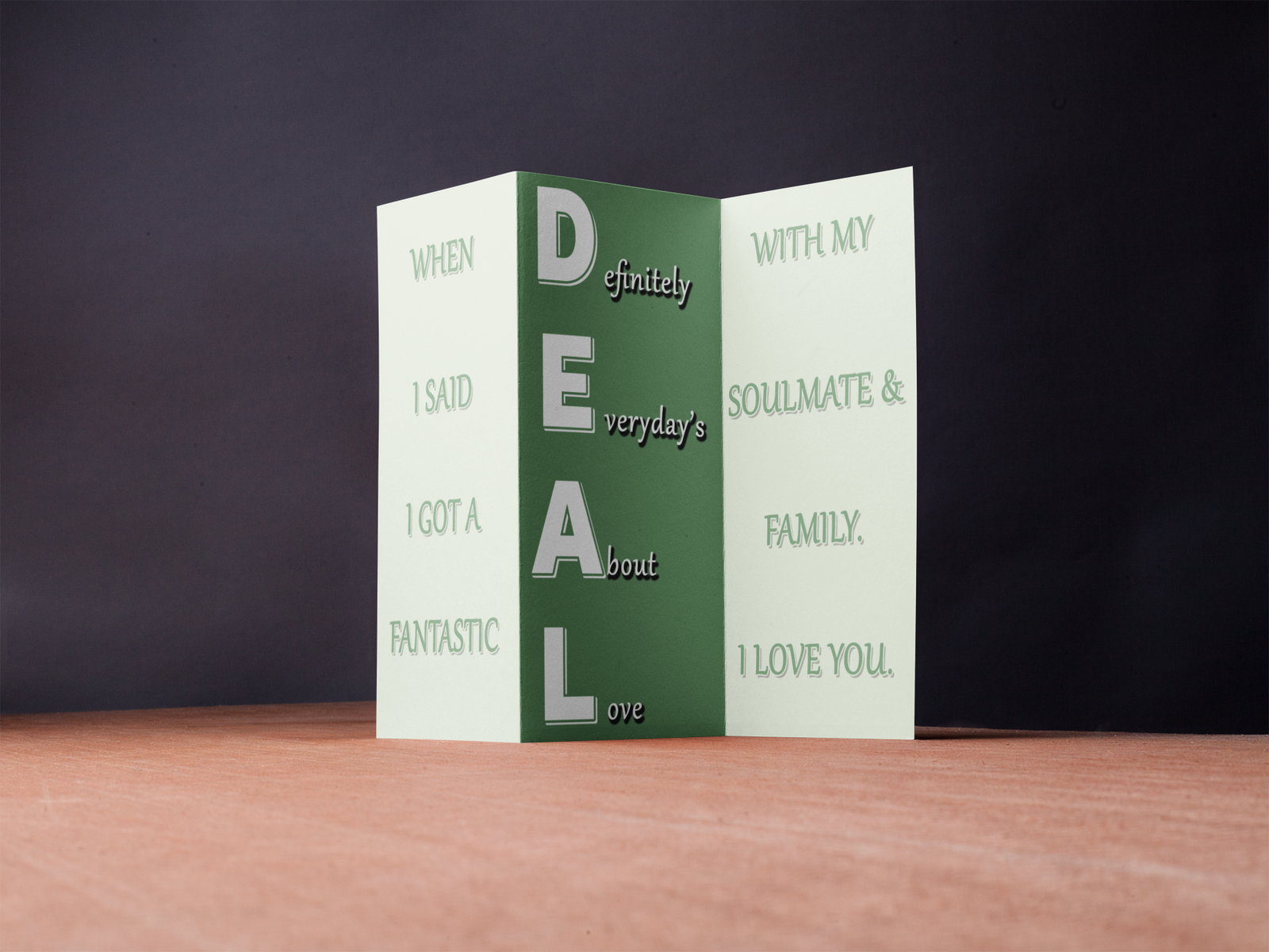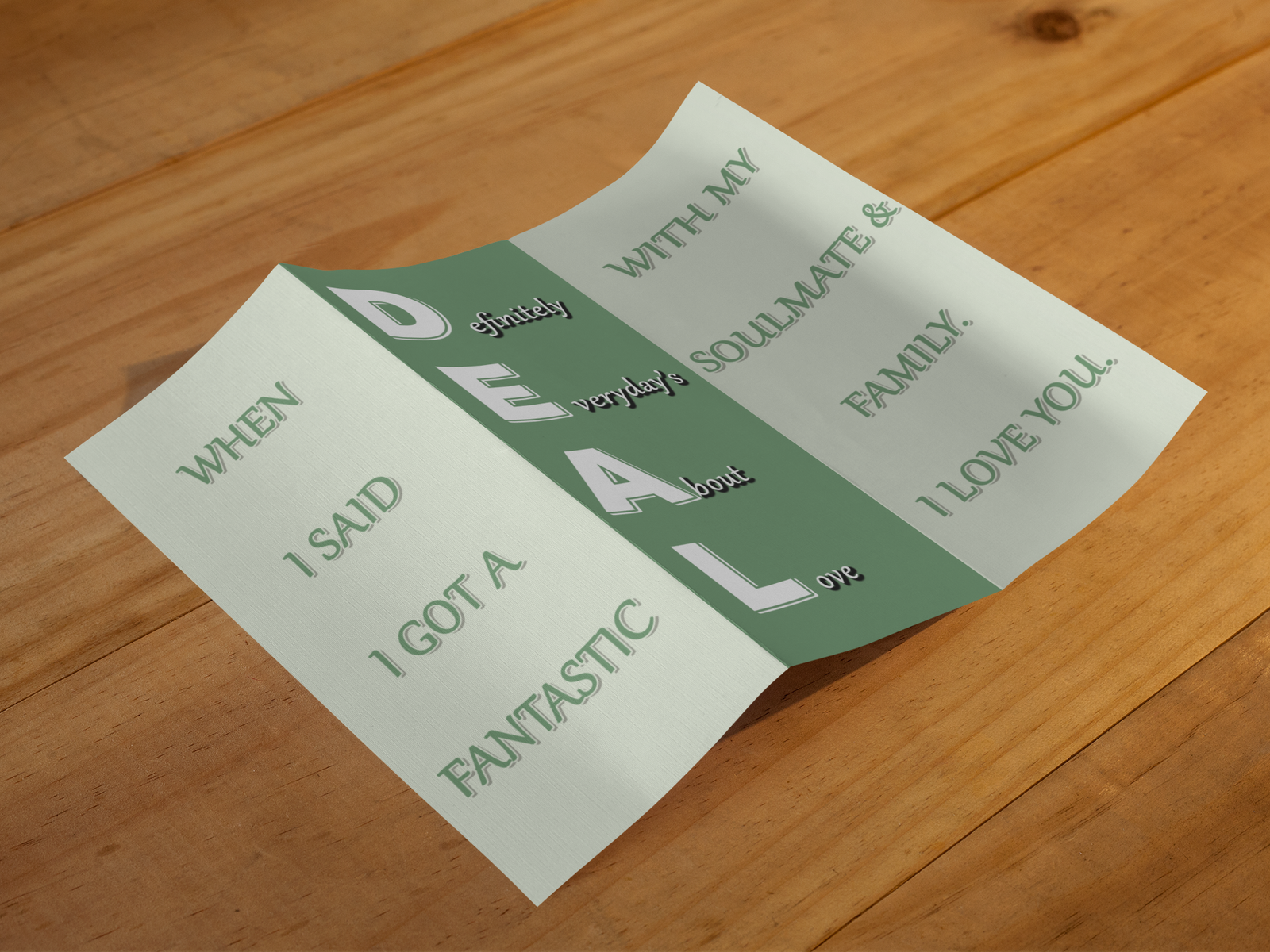 DEAL – Definitely Everyday’s About Love is a soft and meaningful trifold design that celebrates love, family, and emotional connection.