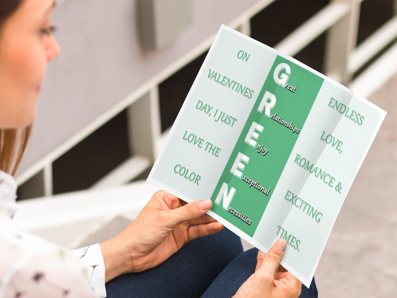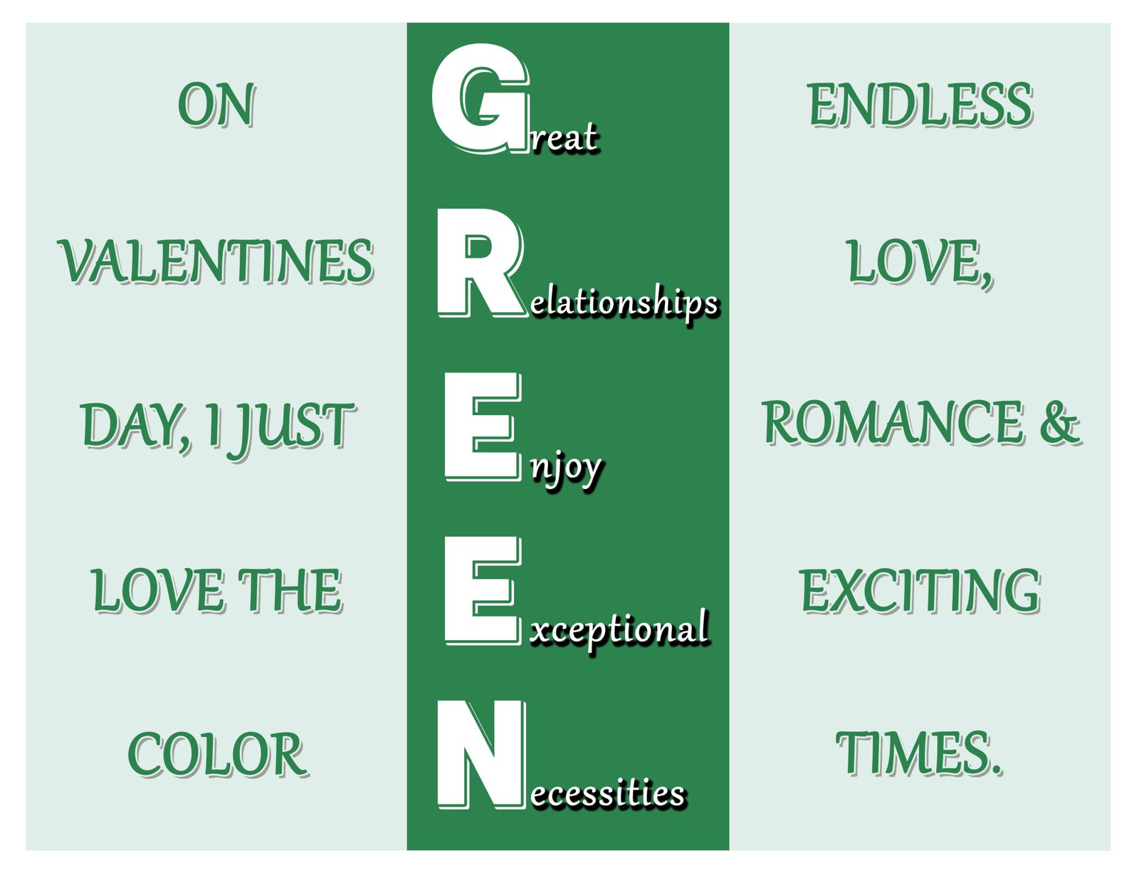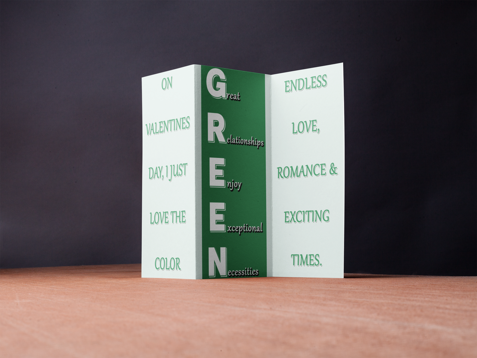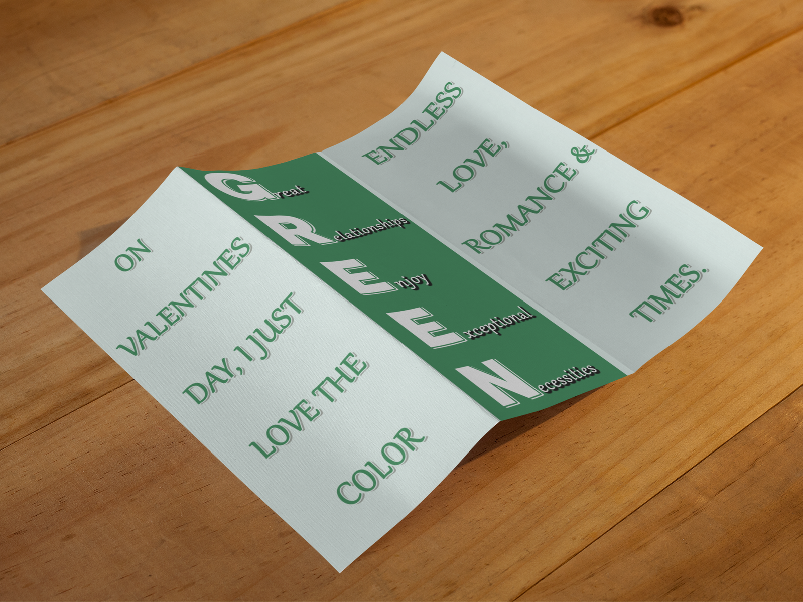 GREEN – Great Relationships Enjoy Exceptional Necessities is a romantic and uplifting trifold design inspired by love, connection, and meaningful relationships.