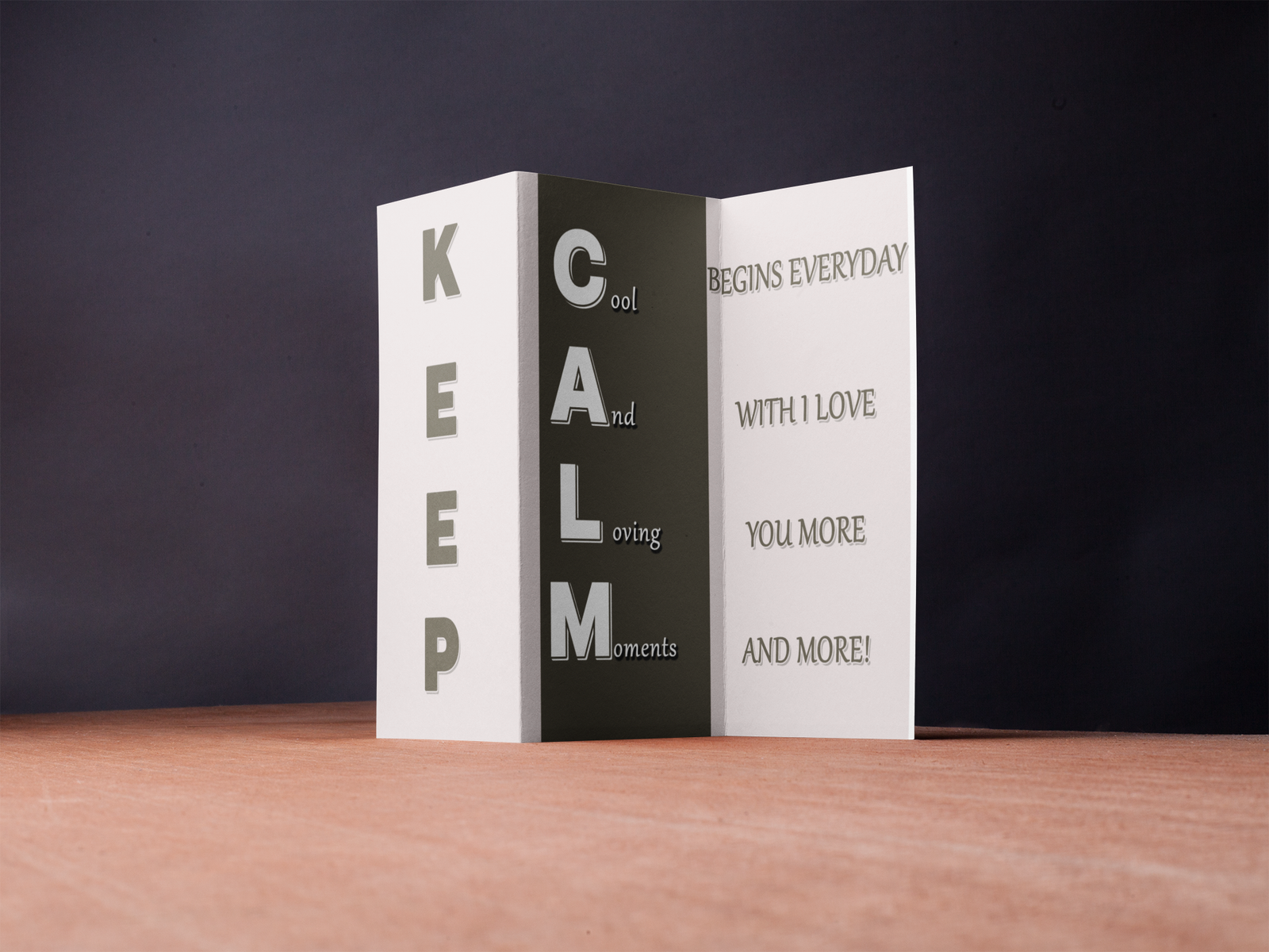 KEEP CALM – Cool And Loving Moments is a sweet and romantic trifold design that celebrates growing love and everyday affection.