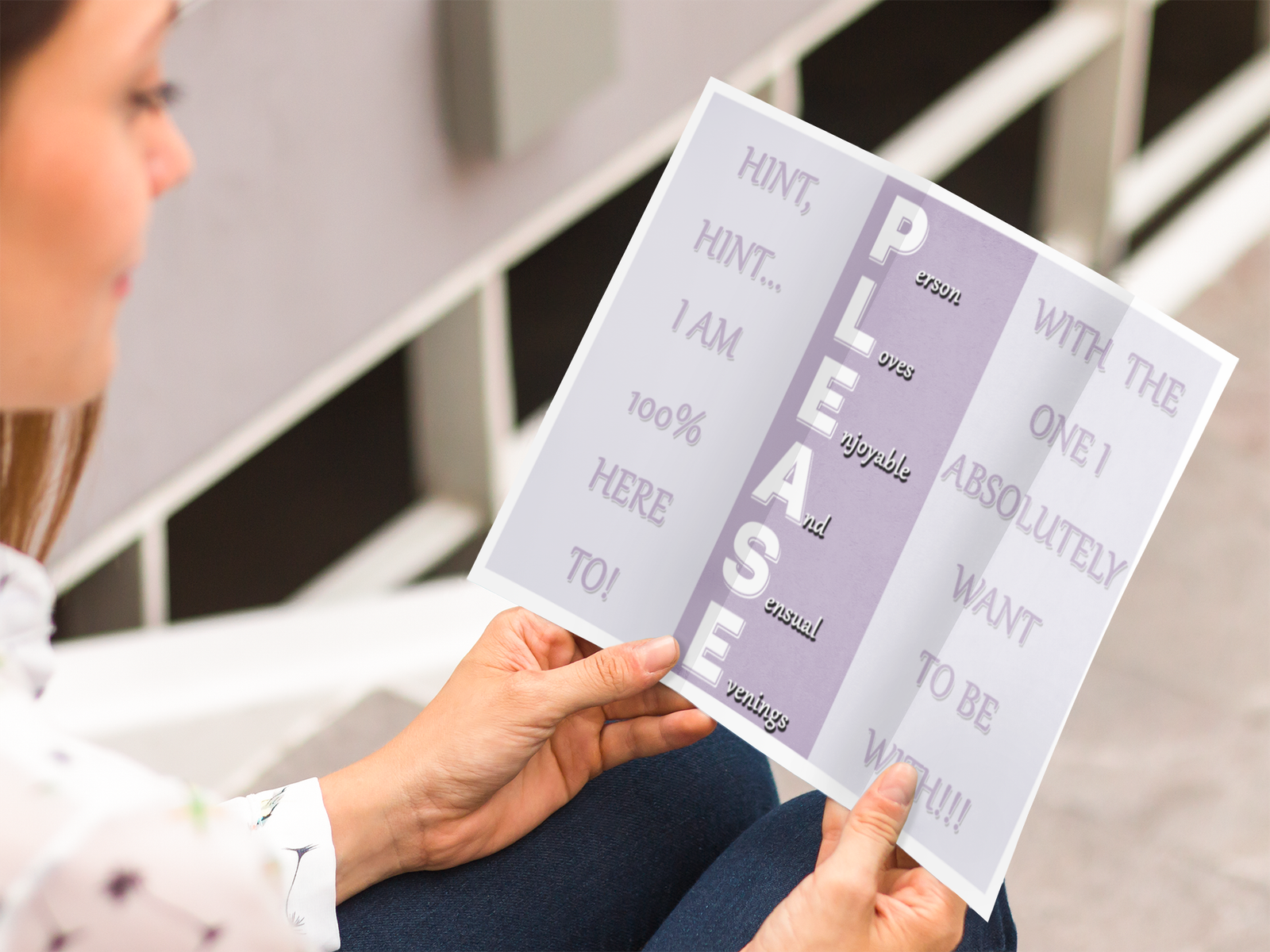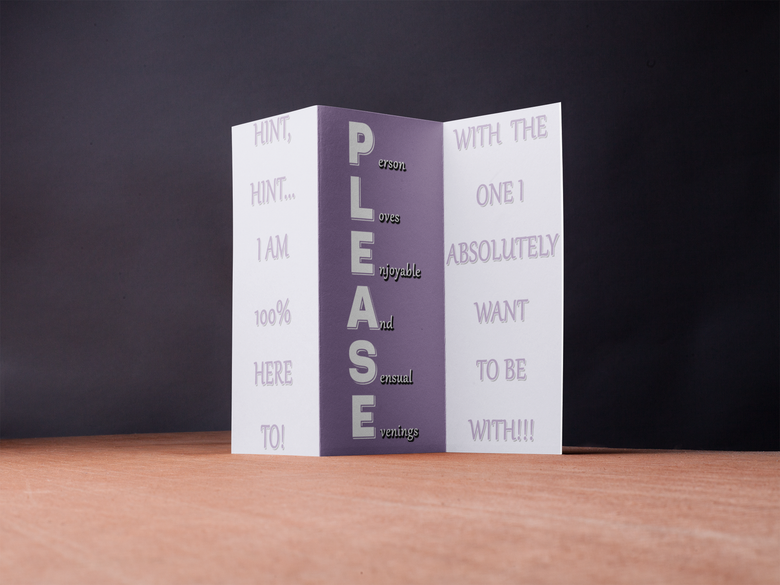 PLEASE – Person Loves Enjoyable And Sensual Evenings is a playful, flirty, and confident trifold design created to drop the perfect hint.